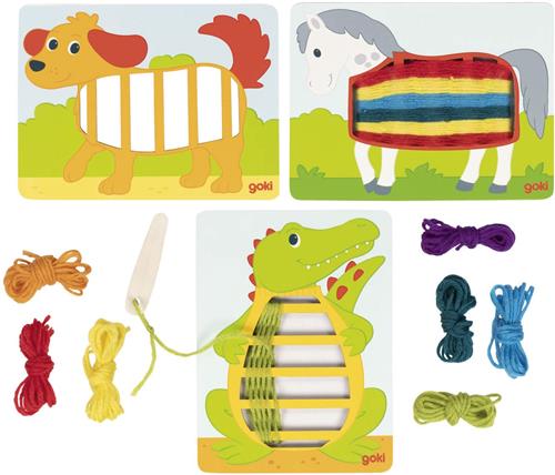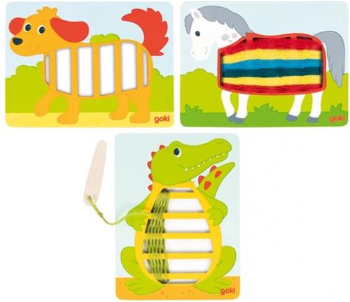 In deze set zitten drie houten weefpuzzels. De puzzels bestaan uit een hond, een paard en een krokodil. Kies een kleur naar keuze en het weven kan beginnen! Ga je voor één kleur of kies je meerdere kleuren uit om het dier mee af te weven? Inclusief 7 kleuren wol.