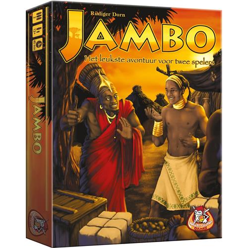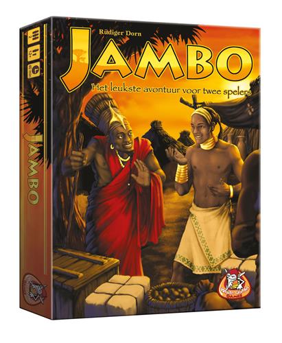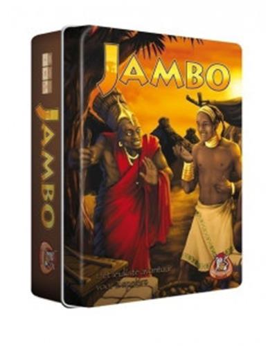 Het hart van Afrika kent al sinds eeuwen een bloeiende handelscultuur. Handelsgoederen komen van heinde en verre, om vervolgens verhandeld en in goud omgezet te worden. De spelers zijn handelaren en proberen goede zaken te doen door slim te in- en verkopen. Winnaar is de speler die aan het einde van het spel het meeste goud heeft. Het leukste avontuur voor 2 spelers is terug! Deze vernieuwde uitgave van White Goblin Games komt in een mooi tinnen blik. De maar liefst 112 speelkaarten zorgen voor enorm veel variatie! De uitbreidingssets Jambo Uitbreiding 1 en Jambo Uitbreiding 2 die in Nederland zijn uitgegeven via QWG Games zijn uitstekend te combineren met deze vernieuwde versie van White Goblin Games. Tevens is Asante met Jambo te spelen.