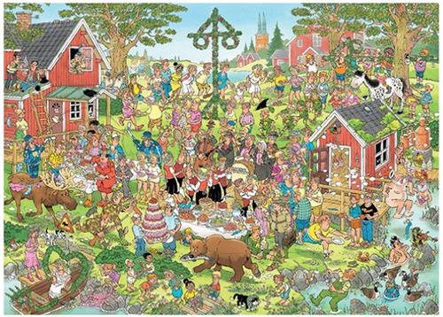 Beleef het avontuur van de Jan van Haasteren familie tijdens het Midzomerfeest in Scandinavië met deze 1000-delige legpuzzel. Tijdens het festival worden ze ondergedompeld in de magie van de langste dag van het jaar, inclusief traditionele muziek, dans en de versierde meiboom. Maar let op, er loopt een boze eland rond terwijl schoonmoeder geniet van lekkernijen aan tafel! Zal alles goed aflopen voor de familie?