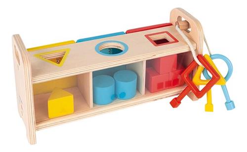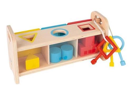 | Verpakkingsinhoud | 1x Essential Vormensorteerder met sleutels Geleverd met 6 blokken (1 gele driehoek, 2 blauwe cirkels, 3 rode vierkanten) en 3 plastic sleutels. |