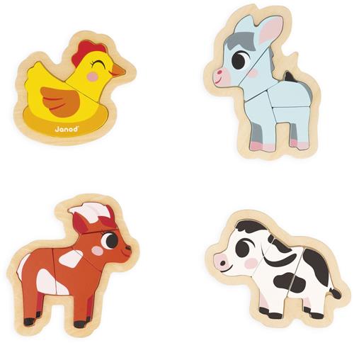 Janod - Puzzel Boerderijdieren - Houten Puzzelset Met 4 Puzzels, Variërend Van 2 Tot 5 Stukjes - Perfect Voor Het Ontwikkelen Van De Fijne Motoriek En Coördinatie! - Geschikt Vanaf 18 Maanden
