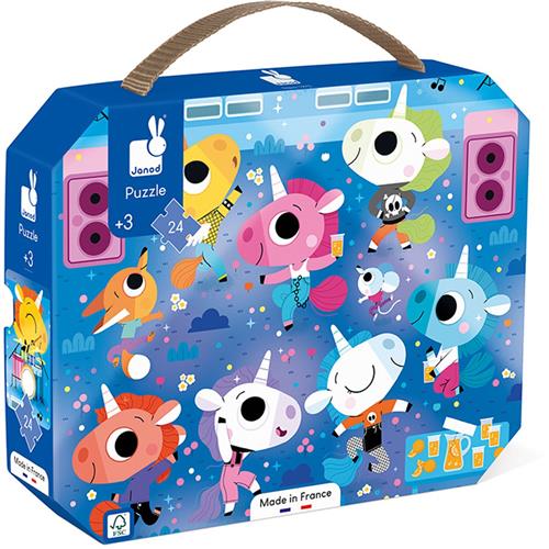 Janod - Puzzel Eenhoorns Rock Concert - In Puzzelkoffer - 24 Stukjes - Geschikt Vanaf 3 Jaar