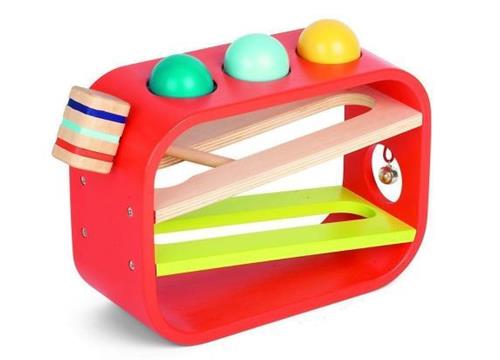 Met afmetingen van 27,50 x 10 x 20,50 cm is dit speelgoed compact en eenvoudig op te bergen. Het is gemaakt van hoogwaardig hout en wordt geleverd met 1 hamer, 3 gekleurde ballen en 1 houten hamertje tik baan. De CE-markering op het speelgoed garandeert dat het voldoet aan de Europese veiligheidsnormen voor speelgoed.