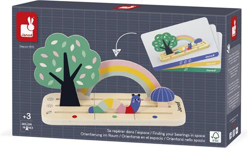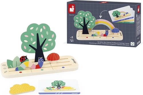 Janod Zoek In De Tuin is een educatief sorteerspel uit de Pedagogie serie, ontworpen voor peuters vanaf 3 jaar om op een speelse manier kennis te maken met oriëntatie en de woordenschat te bevorderen. Met behulp van voorbeeldkaarten leren kinderen waar elk figuur in de tuin thuishoort, zoals de boom en het konijntje. Ze oefenen met begrippen als rechts, links, voor, midden en achter. Het spel bevat een houten bord van 22 x 7.7 x 1.2 cm, 12 voorbeeldkaarten in 3 moeilijkheidsgraden en 8 houten figuren.