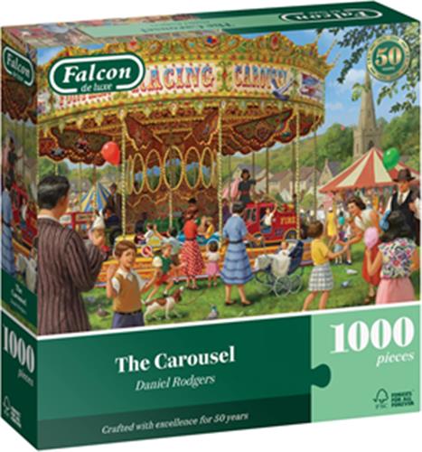 Beleef een tijdloze dag vol plezier met de Jumbo legpuzzel van 1.000 stukjes: The Carousel! Deze prachtige puzzel brengt de charme van de gouden eeuw van de kermis tot leven. De carrousel draait, vrolijke muziek vult de lucht en kinderen lopen rond met ballonnen en lekkernijen. Een perfecte manier om samen met vrienden en familie een feestelijke sfeer te creëren.