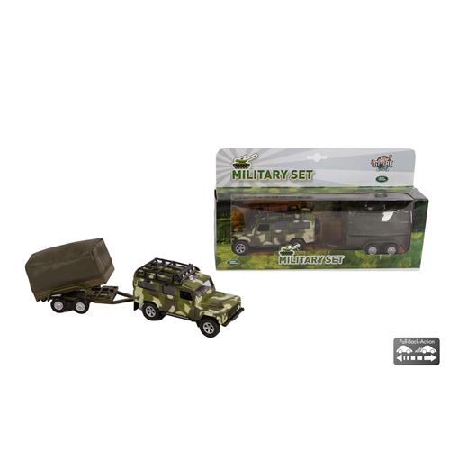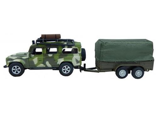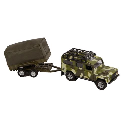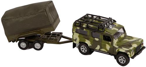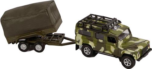 Kids Globe Die-cast Land Rover Met Aanhanger Leger, 27cm