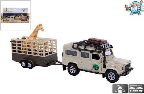 Kids Globe Die-cast Land Rover met Giraffe-trailer, 29cm