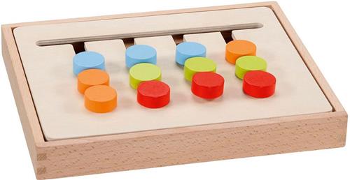 KLEURENRANGSCHIKSPEL 22,6x18,2x3cm, met 16 voorbeeldplaatjes, hout en karton, in houten doos, 4+