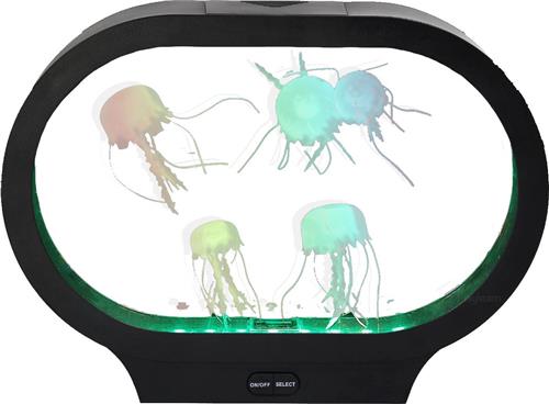 Creëer een betoverende sfeer met dit Kwallen Aquarium - Ovaal. De tank bevat vijf kwallen die levensechte bewegingen maken, waardoor het lijkt alsof ze echt zwemmen. Met LED-verlichting die door verschillende kleuren faseert of op een vaste kleur kan worden ingesteld, zorgt dit aquarium voor een rustgevende ambiance. Het minimalistische ovaal ellipsoïde ontwerp en de stille motoren maken dit aquarium perfect voor elke ruimte.