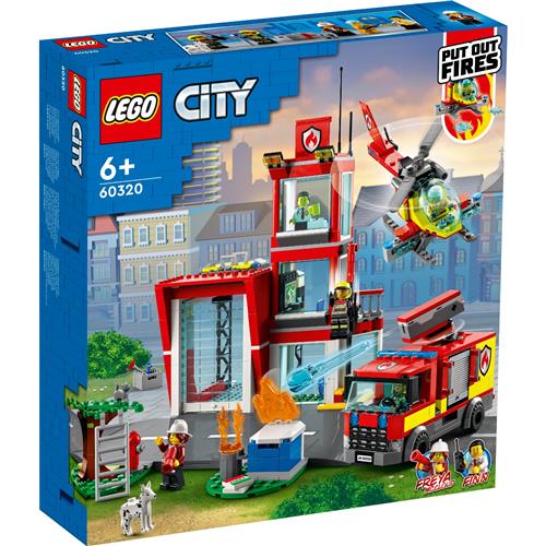 De LEGO City Fire Station (60320) bestaat uit 3 verdiepingen, met een meldkamer, vertrekken voor de brandweerlieden, een receptie en garage. Daarnaast bevat het een helikopter die LEGO waterkledders afschiet en een brandweerauto die waterpijlen afvuurt. De set wordt geleverd met minifiguren van brandweerlieden, waaronder 2 personages uit de LEGO City tv-serie, en figuren van een kat en een hond. Ook is er een LEGO wegplaat inbegrepen om de set uit te breiden.