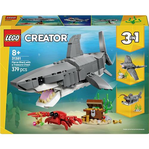 - Bij Alternate kun je LEGO® Creator 3in1 Woeste Haai met Schatkist - Zeedierenspeelgoed - Set met 3 Bouwmogelijkheden, Haai, Lantaarnvis of Mantarog Figuren - Cadeau voor Kinderen Vanaf 8 Jaar - 31381 kopen voor de prijs van € 24,99. Dit is vandaag de goedkoopste webshop.