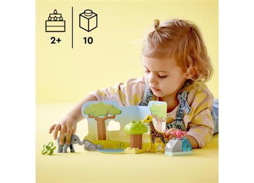 LEGO DUPLO sets zijn ontworpen met leuke verhaallijnen, vrolijke kleuren en diverse personages om kinderen een geweldige start in het leven te geven. De speelset biedt eindeloos fantasierijk speelplezier en bevat 2 babydieren in hun natuurlijke leefomgeving. Met peutervriendelijke figuren zoals de babyolifant en babygiraf kunnen kinderen gemakkelijk spelen. Daarnaast stimuleert het spelen met dit safarispeelgoed de fijne motoriek en creativiteit van kinderen.