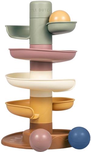 De kleinste bouwers beleven een hoop plezier aan de Little Dutch Spiraaltoren. Stapel de 5 gekleurde delen op elkaar en laat de ballen maar naar beneden rollen. Spannend! De verschillende delen vormen samen een soort kleurrijke glijbaan. Iedere laag heeft een opening aan één zijde, waardoor de bal op de laag daaronder terecht komt. Bouw de Little Dutch Spiraaltoren iedere keer anders op, zodat het altijd weer een verrassing is hoe de ballen naar beneden glijden. Behalve het stimuleren van de hand-oog coördinatie, leert jouw kleintje zo ook over oorzaak-gevolg. De Little Dutch Spiraaltoren is in 2 kleurrijke uitvoeringen verkrijgbaar, waarvan 1 met blauwtinten en 1 met roze tinten. Zelf bouwen, vrolijke kleuren en rondslingerende ballen die zelfs een geluidje wanneer ze naar beneden rollen. Alle ingrediënten voor oneindig speelplezier! Kenmerken.