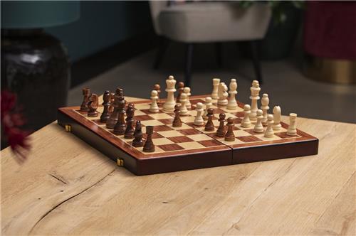 | Verpakkingsinhoud | Schaakspel hout opklapbaar essenhout inclusief schaakstukken |