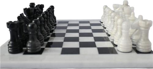 De rijke, natuurlijke marmeren texturen creëren een unieke en luxueuze uitstraling. Met deze schaakset breng je niet alleen een tijdloos spel in huis, maar ook een pronkstuk dat je interieur verrijkt en de kunst van schaken naar een hoger niveau tilt. Dit schaakspel is een geschenk van vakmanschap en luxe voor de ware schaakliefhebber.