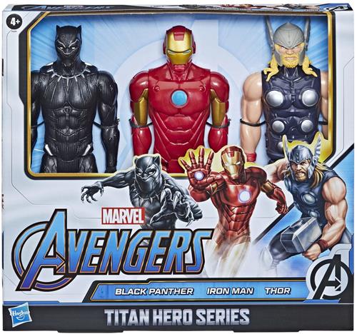 Laat de Avengers gezamenlijk de vijanden bestrijden die ze alleen niet aankunnen; ze vormen het krachtigste superheldenteam ter wereld! Met dit Titan Hero Series Avengers Black Panther, Iron Man en Thor 3-pack breng je de actie en opwinding uit het Marvel-universum bij elkaar. Kinderen vanaf 4 jaar kunnen met deze set actiefiguren zich voorstellen hoe ze zich voorbereiden om de Aarde te beschermen tegen geduchte schurken, geïnspireerd door het Marvel-universum. Met klassieke vormgeving en details, en meerdere beweegbare punten om de figuren in de juiste positie te zetten. Met dit Avengers speelgoed zullen jongens en meisjes met plezier fantasierijke gevechten voeren naast het sterkste superheldenteam ter wereld!
