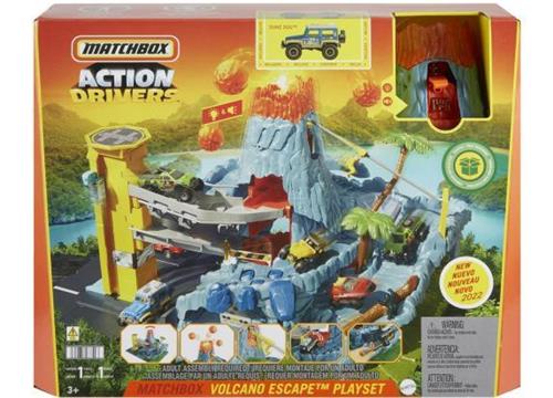 Gebruik de door kinderen bediende lift om jouw Matchbox auto naar de top van de vulkaan te brengen. Eenmaal aangekomen wacht een uitdagend parcours vol hindernissen die overwonnen moeten worden om de onderzoekers te redden die in de val zitten. De set bevat één Matchbox auto, maar extra voertuigen zijn apart verkrijgbaar om het avontuur uit te breiden!