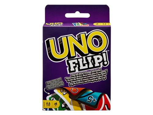 UNO FLIP! is het vertrouwde klassieke kaartspel maar nu met spannende nieuwe mogelijkheden! - Dubbelzijdige kaarten en een speciale FLIP-kaart maken het klassieke spel nog leuker. - Speel de speciale FLIP-kaart en alle kaarten worden omgekeerd, ook de pakstapel. De andere kant laat een compleet nieuwe serie getallen en kleuren zien. - UNO FLIP! bevat ook nieuwe actiekaarten, zoals Trek vijf kaarten en Iedereen overslaan. - En vergeet niet UNO te roepen als je nog één kaart over hebt! Zet je schrap voor de volgende versie van het klassieke UNO: UNO FLIP!