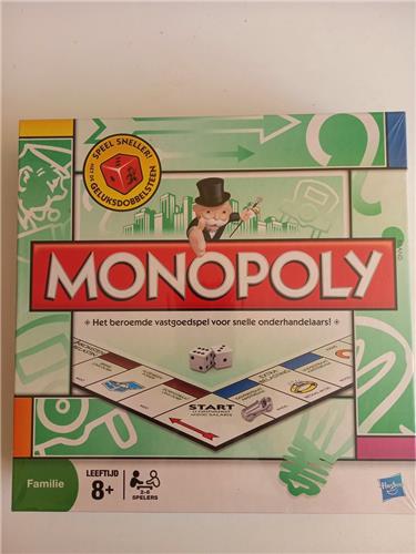 | Verpakkingsinhoud | Inhoud: spelbord, 8 pionnen, 28 eigendomsbewijskaarten, 16 Kanskaarten, 16 Algemeen Fondskaarten, 32 huizen, 12 hotels, 2 dobbelstenen, geld en spelregels. |