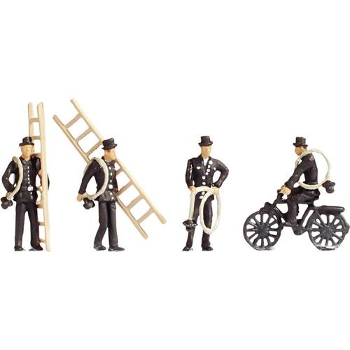Met de NOCH 15052 H0 Aan het werk figuren Geverfd, Staand set voeg je een levendige touch toe aan je modelspoorbaan in schaal H0. Deze set bevat 3 schoorsteenvegers, allen prachtig beschilderd, die te voet of op de fiets op weg zijn naar hun volgende klus. Een andere collega, ook beschilderd, staat klaar om zijn ragebol door een schoorsteen te laten gaan. Hiermee creëer je op een speelse manier realistische scènes op de daken van je miniatuurwereld.
