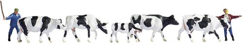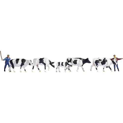 De NOCH 15724 H0 Koeiendrijvers figuren zijn een leuke set met vier zwartbonte koeien, een kalfje en twee mensfiguren. Deze mensfiguren sporen de kleine kudde aan om naar een ander weiland of de schuur te gaan. Met een schaal van H0 zijn deze figuren perfect passend voor jouw modelspoorbaan, voeg een vleugje realisme toe aan jouw modelspoorwereld.