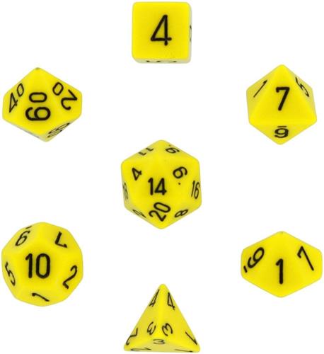 - Bij Spelhuis kun je Opaque Poly 7 Set: Yellow/Black kopen voor de prijs van € 6,99. Dit is vandaag de goedkoopste webshop.