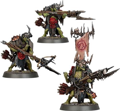 De Man-Skewer Boltboyz zijn berucht om het gebruik van grove kruisbogen om zich in gevechten op afstand te mengen. Hun strijdmakkers van dichtbij spotten en bespotten dit als lafheid, maar deze sluwe Kruleboyz trekken zich hier niets van aan. In plaats daarvan genieten ze ervan om hun vijanden te doorboren met twee meter lange bouten, terwijl ze hun slachtoffers horen schreeuwen en kronkelen terwijl ze herladen voor de fatale schot. Deze dodelijke jagers hebben de kunst van gevechten op afstand meester gemaakt en bespotten hun vijanden van een veilige afstand. Ze staan bekend om hun gemene houding, waarbij ze hun bouten bedekken met gif en gifstoffen en ervoor zorgen dat de gemene punten op elke bout gebouwd zijn om bij impact te verbrijzelen, waardoor scherven van vervuild metaal achterblijven in de wonden van hun tegenstanders. Deze meerdelige set bevat 41 onderdelen waarmee je drie Man-Skewer Boltboyz kunt bouwen, met verschillende hoofdopties en kruisboogonderdelen die compatibel zijn over alle drie de lichamen. Er is ook de optie om een van hen als een Boltboy Boss in elkaar te zetten, compleet met banierpaal, een keuze uit twee helmen en een kenmerkende kruisboog. Deze miniatuurfiguren worden ongeverfd geleverd en moeten worden geassembleerd. Ze worden geleverd met 3x 32mm Ronde Citadel-bases.