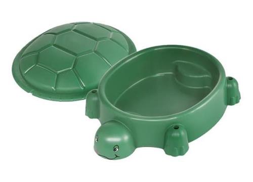 De zandbak wordt geleverd inclusief deksel, zodat het zand altijd schoon en droog blijft wanneer er niet mee gespeeld wordt. Met afmetingen van [afmetingen uit JSON markup] biedt deze zandbak voldoende ruimte voor meerdere kinderen om samen te spelen. De vrolijke groene kleur en het leuke schildpadontwerp maken deze zandbak een aanwinst voor elke tuin.