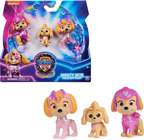 Ontdek drie generaties van Skye, de geliefde pup uit PAW Patrol, met deze unieke cadeauset. De set bevat een Skye-actiefiguur uit de eerste PAW Patrol-film, een Mighty Pup Skye-figuur uit PAW Patrol The Mighty Movie en een schattig Baby Skye-speelfiguur. Elke pup is getrouw aan het authentieke PAW Patrol-ontwerp en styling, rechtstreeks uit de films. Voor verzamelaars van PAW Patrol-speelgoed en fans van de show is deze set een must-have. Verder zijn er nog vele andere speelgoedsets geïnspireerd door de PAW Patrol-serie, zoals het vliegdekschip-hoofdkwartier en speciale editie speelfiguren en speelsets zoals Mighty Pups, Aqua Pups en Big Truck Pups - elk apart verkrijgbaar.