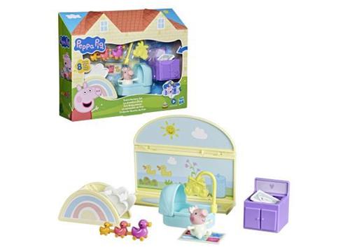 Breng de wereld van Peppa Pig tot leven met de Peppa Pig Evies kinderkamer speelset! Deze leuke set bevat een schattig Baby Evie-figuurtje van 7,5 cm en biedt alles wat kinderen nodig hebben om Evies kamer in te richten. Laat je creativiteit de vrije loop met de vrijstaande achtergrond en prepareer Evies wiegje met de afneembare mobiel en het babydekentje.