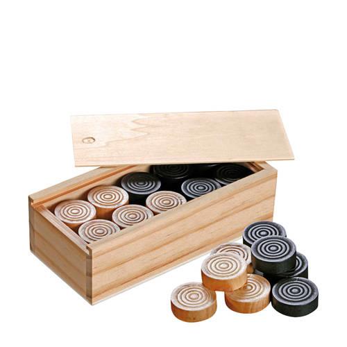 Philos Damstenen met een diameter van 30 mm zijn ideaal voor het spel. Met een speeltijd van minimaal 10 minuten en maximaal 30 minuten is het een uitdagend en onderhoudend spel voor 2 spelers vanaf 6 jaar. De damstenen zijn verpakt in een dennenhouten box met afmetingen van 170 x 80 x 50 mm, wat ze gemakkelijk op te bergen maakt. Deze set bevat 20 stenen, elk gemaakt van berkenhout in naturel of zwart gebeitst.