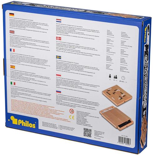 Philos Go & Go Bang is een strategisch spel met weinig regels en veel spelvariaties. Het doel van het spel is om het grootste gedeelte van het speelbord te veroveren en de meeste stenen van je tegenstander te pakken. De kassette van beukenhout heeft een afmeting van 300 x 285 x 40 mm en een veldgrootte van 14 x 15. De speelstenen hebben een diameter van 13 mm.