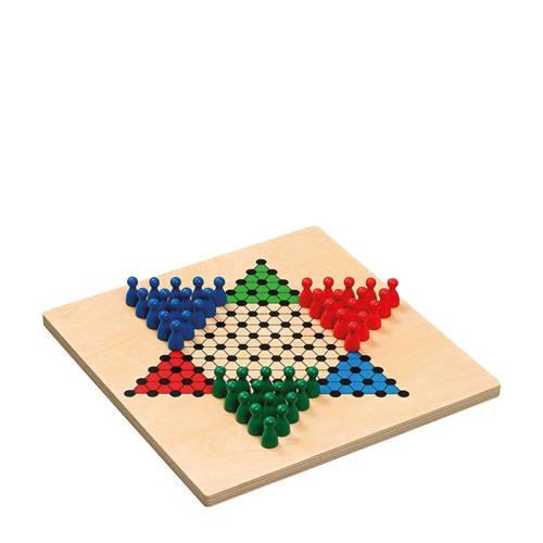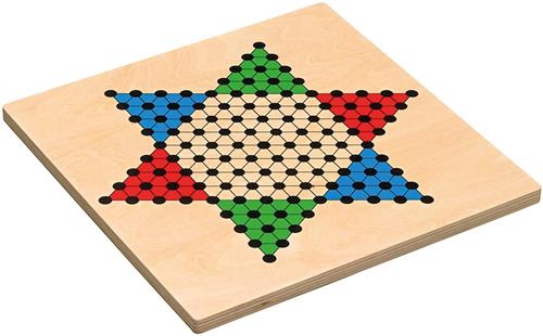 Deze Halma set voor 2-3 spelers is gemaakt van multiplex speelbord en berkenhouten speelstukken. Het speelbord heeft een vierkante afmeting van 260 x 260 x 12 mm en de speelstukken hebben een diameter voet van 13 mm en een hoogte van 24 mm. De speelstukken zijn rood, groen en blauw van kleur en het spel bevat in totaal 45 speelstukken.