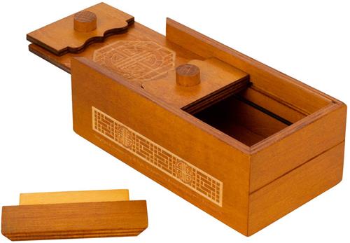 De Philos Secret Box Double Happiness is een uitdagende puzzeldoos met een geheimvak. De doos is gemaakt van lichtbruin gelakt multiplex en heeft een afmeting van 150 x 80 x 55 mm. Deze breinbreker biedt een unieke manier om geld, juwelen of andere kleine geschenken te geven, waardoor het cadeau extra bijzonder wordt. Perfect voor puzzelliefhebbers die van een uitdaging houden!
