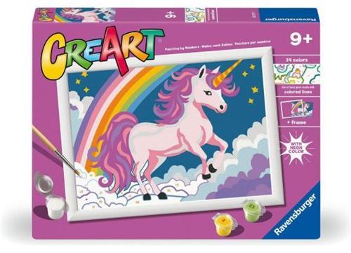 Ontdek de magische wereld van kunst met de Ravensburger CreArt Pink Unicorn (Neon) set! Deze schilderen op nummer set biedt jonge kunstenaars vanaf 7 jaar de perfecte gelegenheid om hun creativiteit de vrije loop te laten. Laat je betoveren door de levendige neonkleuren en creëer een prachtig kunstwerk van een schattige eenhoorn.