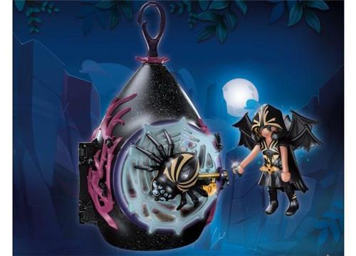 De schuilplaats van de Bat Faries biedt een griezelig knus thuis. Hier bewaart de Bat Fairy haar gestolen kristallen. Ze heeft zojuist weer een paar kristallen bemachtigd en bewaart ze in het grote boek zodat ze veilig bewaard blijven. Dan gaat ze naar haar schuilplaats en bestudeert ze het magische perkament.Waar zouden meer kristallen verborgen kunnen zijn? Voor het slapengaan maakt de Bat Fairy het zich ondersteboven comfortabel bij de kroonluchter van haar huisje, terwijl haar geliefde totemdier, de grote spin de wacht houdt buiten bij de spinnenwebdeur. Met zo'n schildwacht durft niemand de kristallen te stelen. De set bevat een Bat Fairy met een spin als totemdier, een druppelvorming huis, drie kleine kristallen, een veer, een inktpotje, een haarborstel, een Bat Fairy-cape, een paar vleugels en vele andere extra's voor magische sprookjesavonturen. De Bat Fairies schuilplaats kan met behulp van de haak aan de Bat Fairies ruïne of in de kinderkamer worden opgehangen. Ontdek de nieuwe uitpakervaring: dankzij genummerde zakjes begint het plezier zodra je uitpakt!