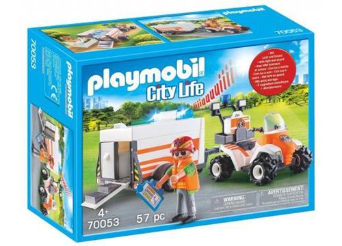 - Bij Toychamp kun je PLAYMOBIL City Life Eerste hulp quad met trailer - 70053 kopen voor de prijs van € 22,99. Dit is vandaag de goedkoopste webshop.