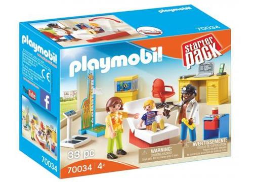 - Bij Bol.com kun je PLAYMOBIL StarterPack Bij de kinderarts - 70034 kopen voor de prijs van € 35,95. Dit is vandaag de goedkoopste webshop.