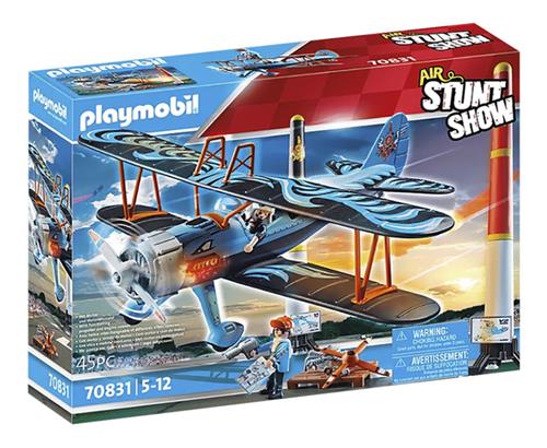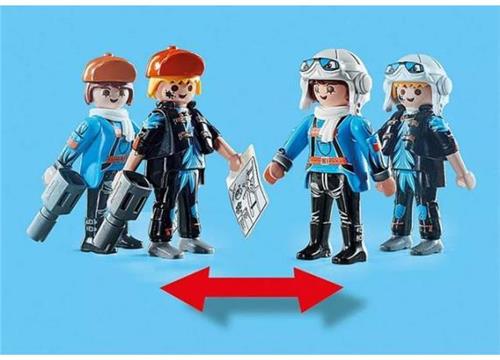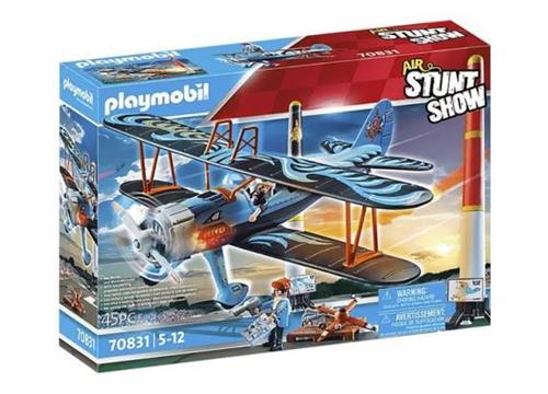 Het vliegtuig wordt geleverd met twee PLAYMOBIL-figuren, een dubbeldekker met roterende propeller en elektronische module, twee grote pylonen met voet, gereedschap, scoreborden en vele andere extra's voor spannende vlieguren.