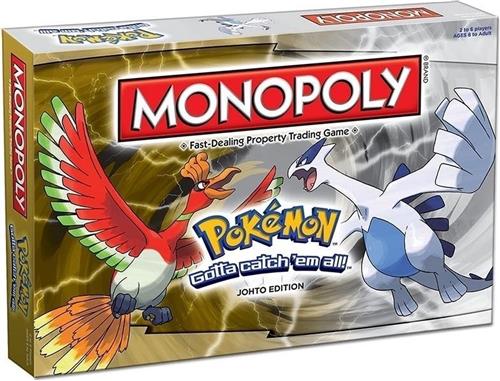 Stap binnen in de betoverende wereld van Pokémon met het Monopoly Johto Edition bordspel. Reis door de Johto-regio terwijl je langs alle acht Gyms gaat en het opneemt tegen de Pokémon van de Gym Leaders. Verzamel Trainer Battle en Professor Elm kaarten die je belonen voor je Pokémon-gevechten en voor onverwachte wendingen zorgen. Ga op avontuur met Pikachu en zijn vrienden terwijl je strategisch speelt in dit unieke Pokémon-monopolyspel.
