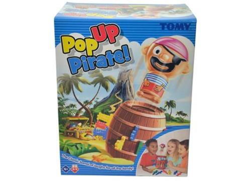 TOMY Pop Up Pirate is een spannend familiespel! Schuif om de beurt een zwaard in het vat, maar wees voorzichtig, want een verkeerde beweging kan al fataal zijn. De Piraat zal de ton uitspringen als hij er niet meer tegen kan. Als hij door jouw zwaard uit zijn ton springt, ben je af! Ga om de beurt door: de laatste speler die over is de winnaar! Iedere keer dat je de piraat terug in zijn ton drukt, zal hij op een andere plek op springen. Je weet dus nooit wanneer je af bent! Speel 1-op-1 of tot en met 4 spelers.