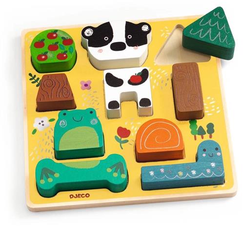 Puzz & Match Happy is de ideale houten puzzel en bouwspel voor nieuwsgierige kinderen vanaf 18 maanden. Dit kleurrijke spel bevat 11 stevige puzzelstukken, waarmee kleine handen schattige dieren en bomen samenstellen. Kinderen kunnen eindeloos combineren en hun fantasie de vrije loop laten. Een kop van een koe hier, een tak van een boom daar - de mogelijkheden zijn vrijwel eindeloos!