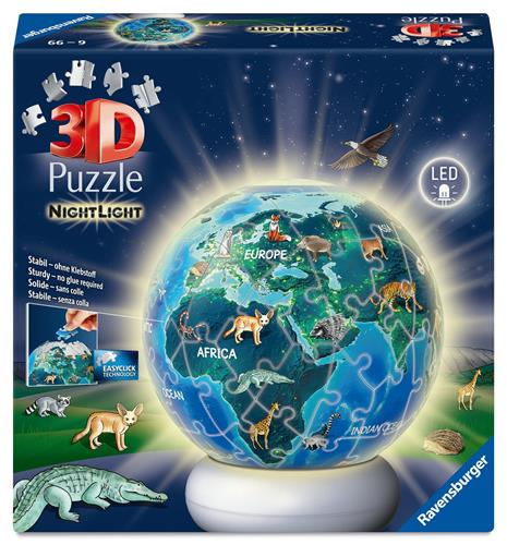 - Bij Bol.com kun je Ravensburger Aarde met Diermotieven 3D Puzzle-Ball Nachtlicht 73 Stukjes kopen voor de prijs van € 19,99. Dit is vandaag de goedkoopste webshop.