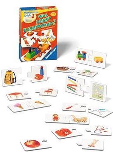 Wat hoort bij elkaar? Bij het emmertje hoort de schop. Met behulp van de plaatjes kunnen er relaties worden ontdekt. Het kind gaat dan nauwkeurig kijken, waarnemen en zich concentreren op de plaatjes. Voor 1 tot 4 spelers vanaf 2 jaar.