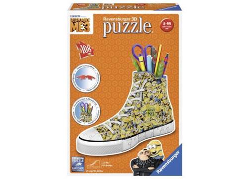 Ontdek de unieke Ravensburger Sneaker Despicable Me 3, een 3D puzzel bestaande uit 108 stevige kunststof puzzelstukjes. Met een cool design geïnspireerd door de populaire film, is deze puzzel niet alleen een leuke uitdaging, maar ook een prachtige decoratie voor de kamer van elke fan!