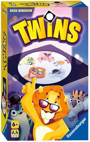Twins - snel kaartplezier, waarbij iedereen tegelijk speelt! Wie supersnel de tweeling roept, die bij zichzelf en op de dierenkaart in het midden staat, wint! Inhoud: 50 dierenkaarten, 25 speler-kaarten (5 sets), 1 handleiding. Het Ravensburger Twins kaartspel biedt snel plezier voor spelers van 6-99 jaar oud en kan gespeeld worden door 2-5 spelers. Met een speeltijd van 10 minuten is dit kaartspel perfect voor snelle speelsessies.