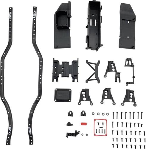De leveromvang van deze set bevat een glijplaatset 535207C, een schokdemperset 535112C, een accubehuizing 535121C, een bevestigingsset voor middentransmissiebekleding 535111C en een frame 535128C. Alles wat je nodig hebt om je crawler weer in topconditie te brengen.