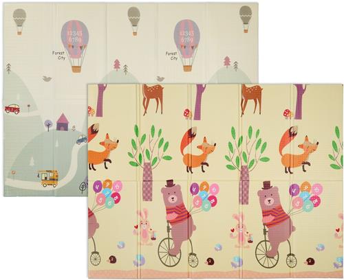De speelmat heeft afmetingen van 200 x 150 cm en kan na gebruik eenvoudig worden opgevouwen en opgeborgen in de bijgeleverde tas. Aan de ene kant van de mat vind je schattige dierenafbeeldingen en aan de andere kant een vrolijk verkeersthema. De mat is waterafstotend en biedt een isolerende werking, zodat je kind veilig en comfortabel kan spelen.