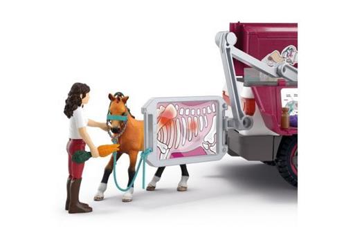 | Verpakkingsinhoud | 1x pick-up, 1x aanhanger, 1x Mw. Kramer-figuur, 1x Tennessee Walker-veulen, 1x röntgenapparaat, 3x röntgenfoto's, 1x pleister, 1x zalf, 1x spuitfles, 1x medicijnflesje, 1x trimborstel, 1x wortelhalsband, 1x turquoise stalhalster, 1x montagehandleiding, 1x stickervel |