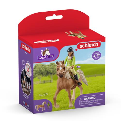 De set bevat 1 speelfiguur van Sarah, 1 speelfiguur van Mystery, 1 rijhelm, 1 zadel, 1 hoofdstel met teugels en zelfs een leuke gele armband om te laten zien dat Sarah lid is van de Horse Club. Het speelgoed is gemaakt van hoogwaardig kunststof en de schleich figuren staan bekend om hun realistische details en pedagogische waarde.